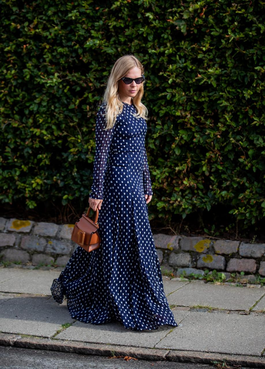 Gam màu xanh navy rất phù hợp cho những cô nàng điệu đà khi dạo phố vào những ngày hè hay đầu thu. Mặc áo sơ mi màu vàng và váy midi màu xanh navy. Sẽ trông gọn gàng và tươi mới, đặc biệt là rất ăn ảnh.